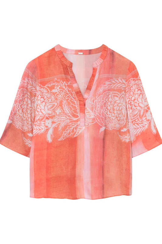 GUSTAV Carmen Bluse, Coral/beige