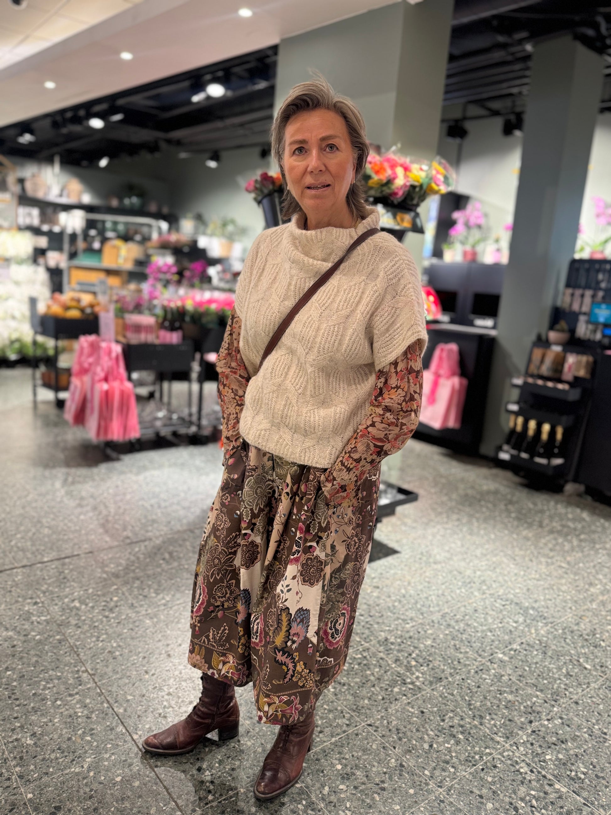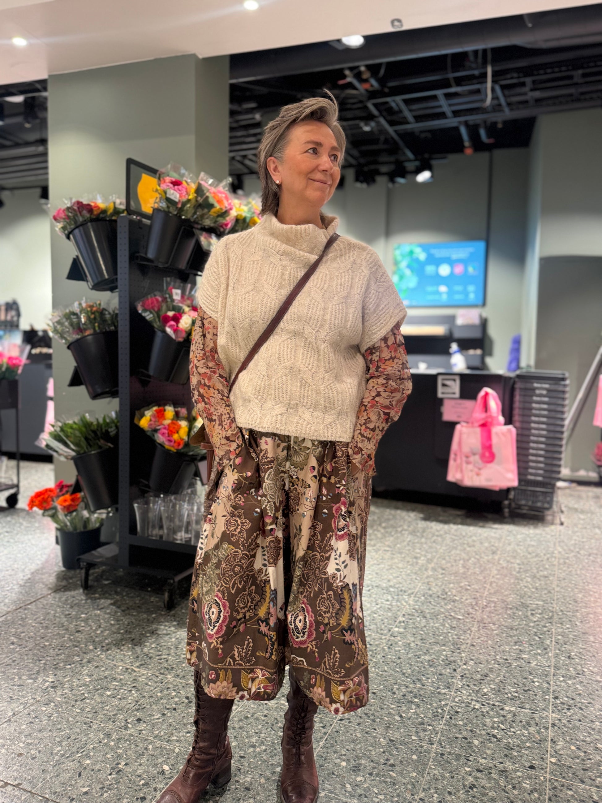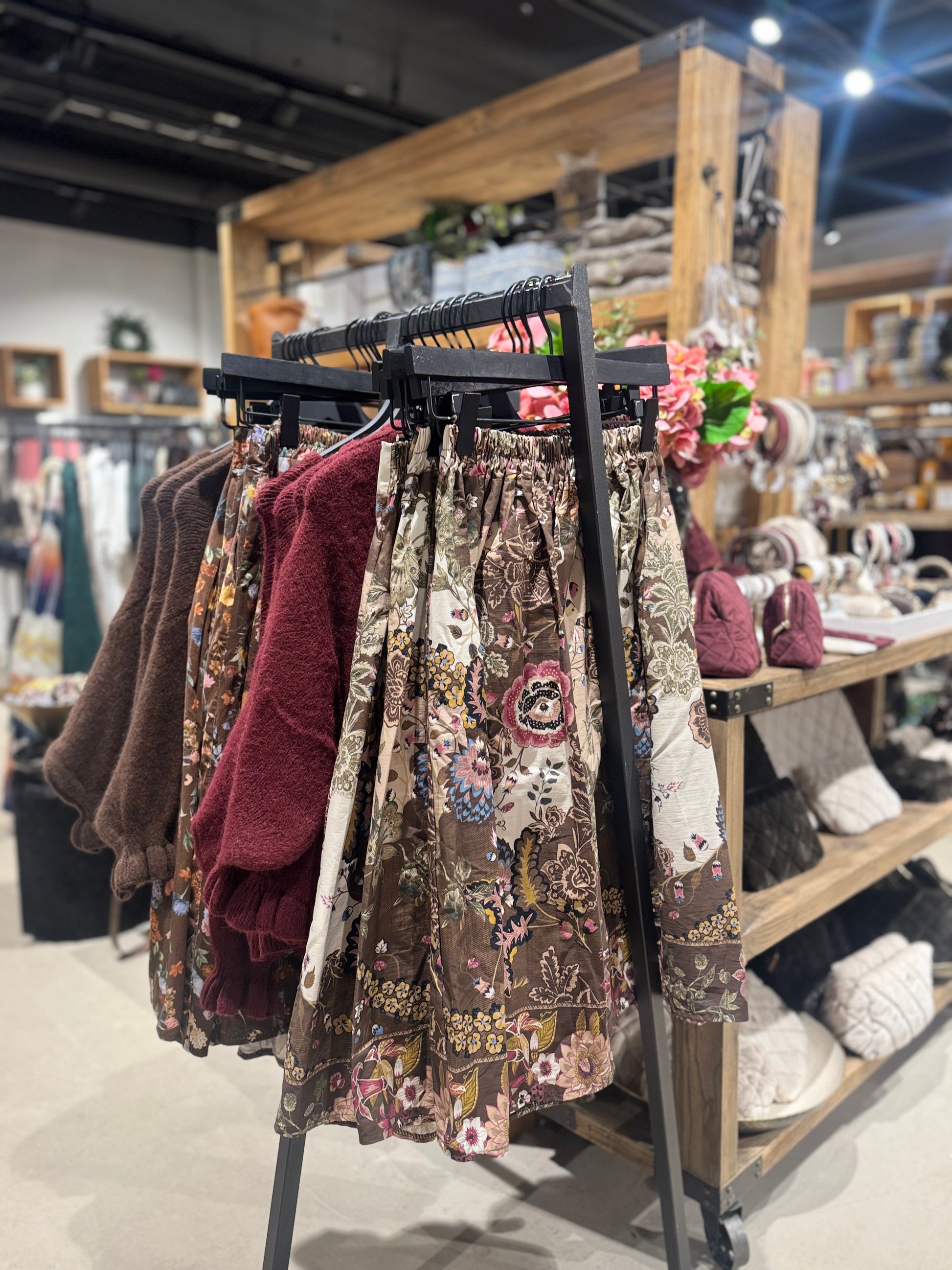 Elegant skjørt med et vakkert blomsterprint. Modellen har strikk i livet for ekstra komfort og går omtrent til midt på leggen.