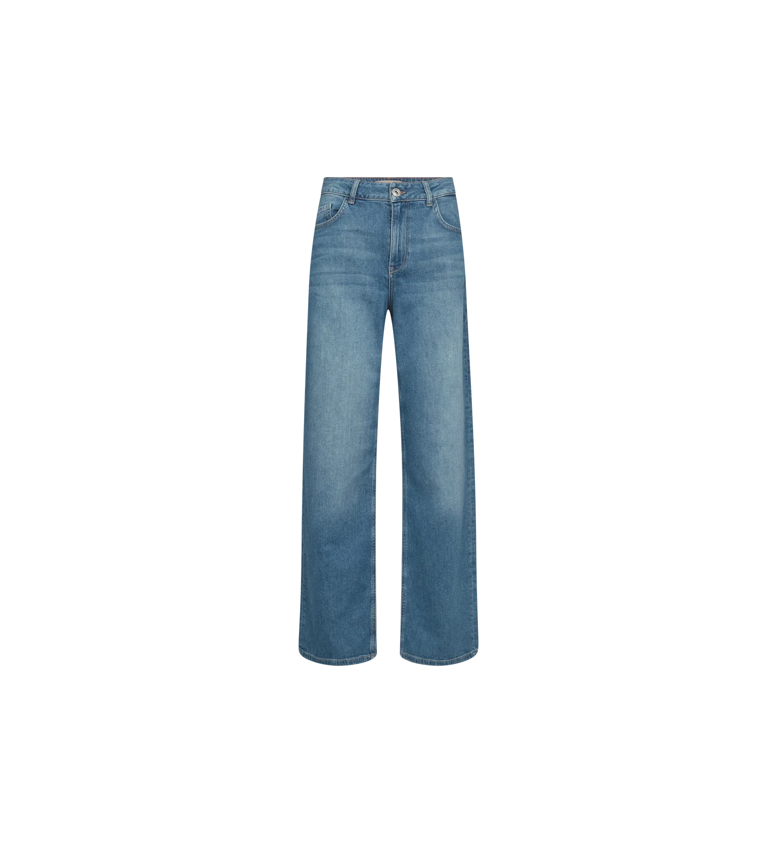 Disse wide-leg-jeansene har høy livhøyde og lange, rette ben for et moderne og elegant uttrykk. Laget i klassisk denim med lett stretch som gir komfortabel passform og god bevegelighet. En allsidig modell som enkelt kan styles både opp og ned.